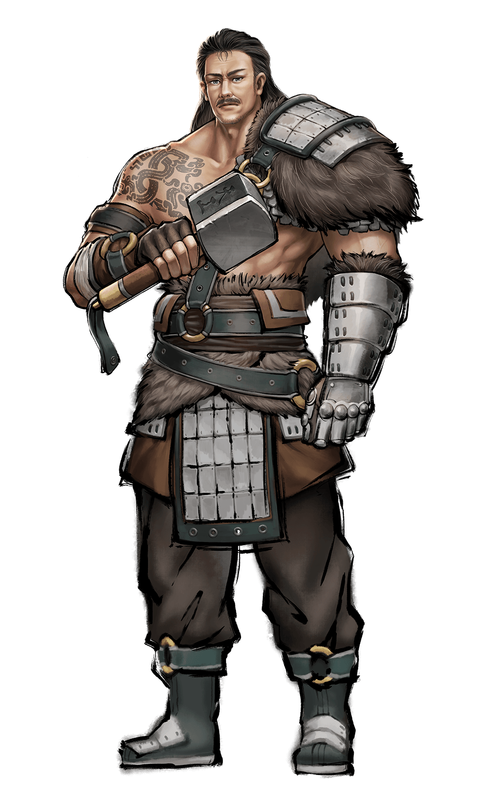 武藝超群,雄才大略,允文允武,具備大將軍該有的潛質。話少,不輕易嶄露感情,總是簡單扼要地進行表達。三神兵之一「水龍刀」的持有者,刀法精湛,一招一式之間藏有陣陣凜冽之氣,內功稍低者與之交手,極易因寒氣入體而手足無法動彈。